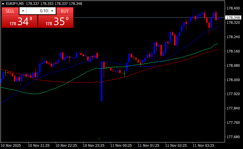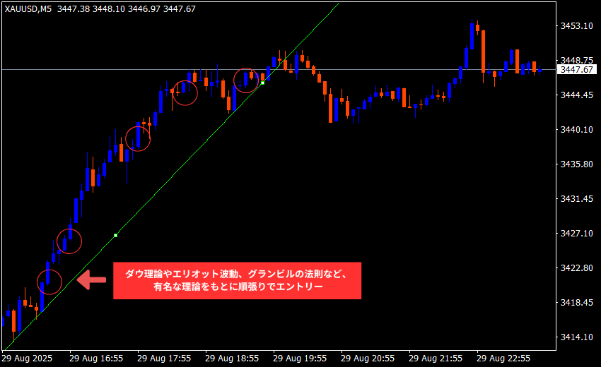 1分よりノイズが少なく、トレンドの方向性が見やすいため、勝率と安定感が改善しやすいのが特徴です。