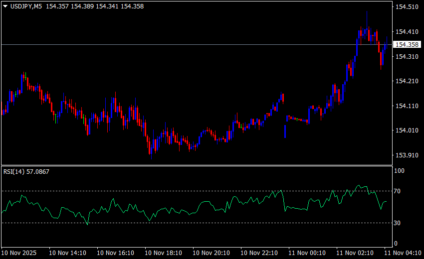 5分スキャルピングでは、移動平均線(EMA)とRSIを組み合わせて、相場の方向性と勢いを同時に判断します。