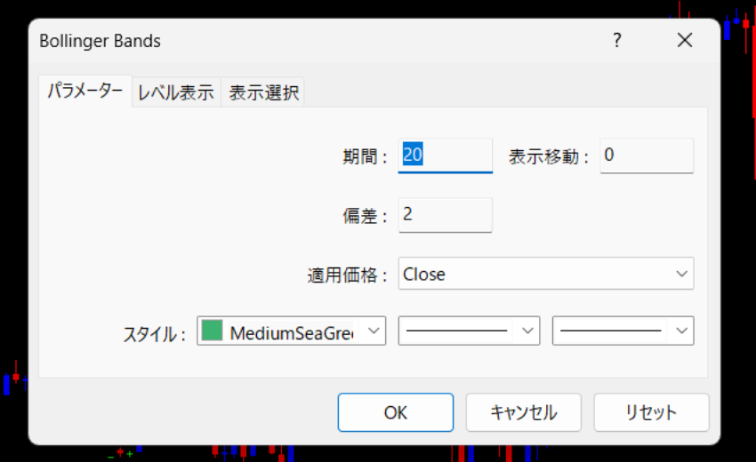 FX初心者の場合は、それぞれのインジケーターをデフォルトで設定しましょう。