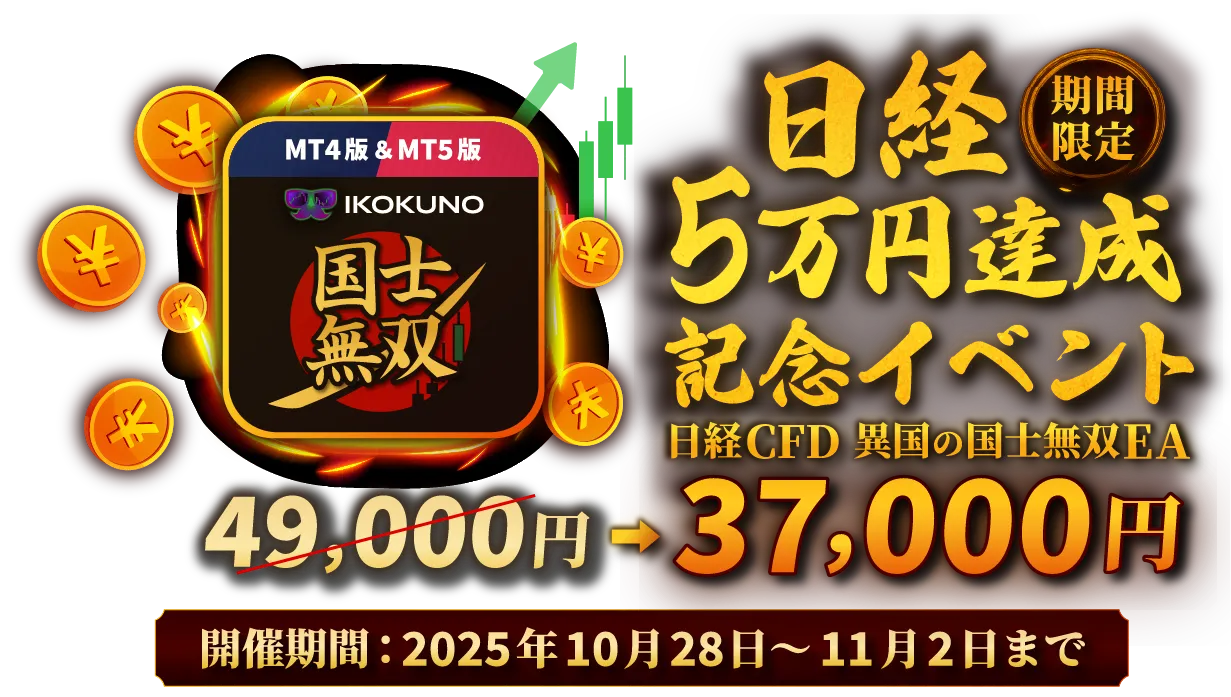 異国の戦士初、日経225CFD専用EA。これまで為替通貨ペアやゴールドで培ったEA開発技術を全て結集した、希少な株価指数EA。