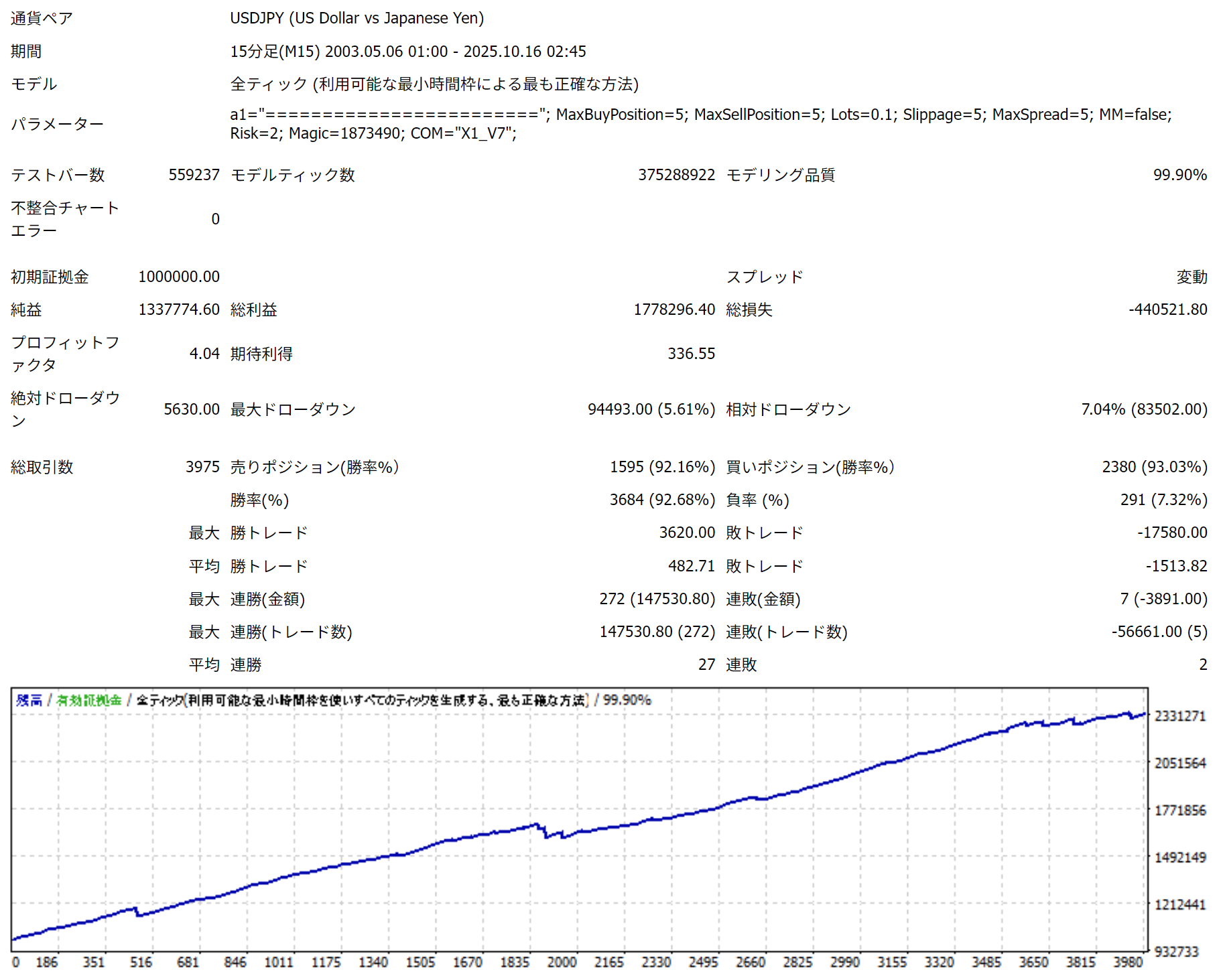 記念すべきXシリーズの1作目。ドル円15分足専用。王道のドル円で「高い攻撃力」と「守りの硬さ」を両立した、まさに異国のXシリーズの中核。