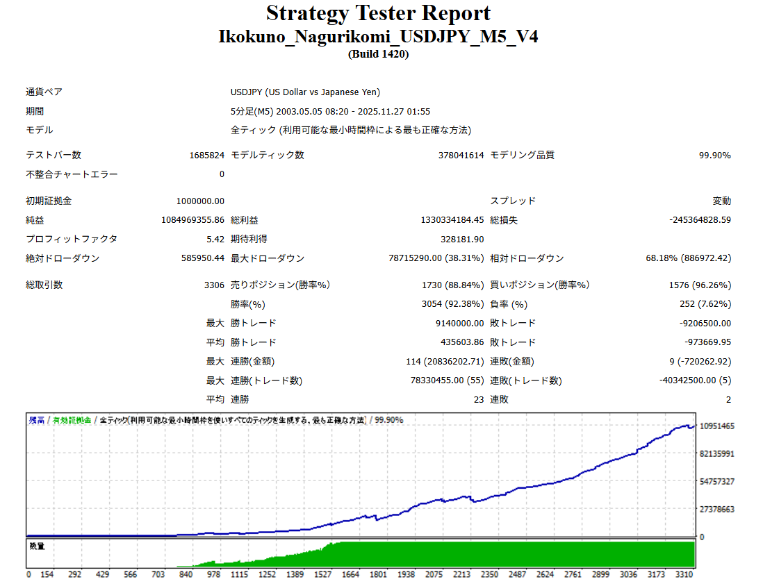 EAで収益を上げるには、その取引ロジックに高い精度が求められます。本EAは、過去の値動きデータを徹底的に研究し、ドル円に特化した特殊なロジックを搭載しています。勝率は驚きの92.61%を誇り、安定した運用を実現します。