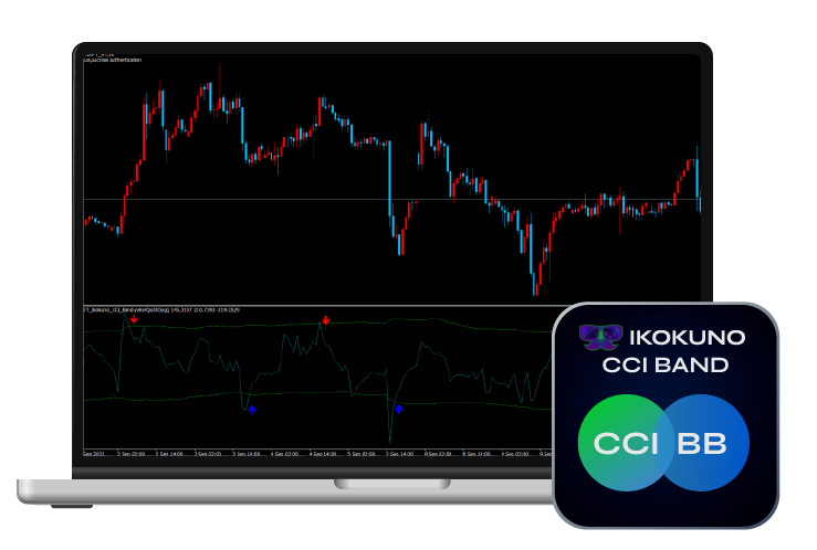 MT4用「CCI×ボリバン」の無料カスタムインジケーターです。単体では使いにくい「CCI」に「ボリンジャーバンド」を追加して、買われ過ぎ/売られ過ぎを矢印サイン付きで分かりやすく表示してくれます。メールやアラート通知機能もあるのでサインも見逃さない!