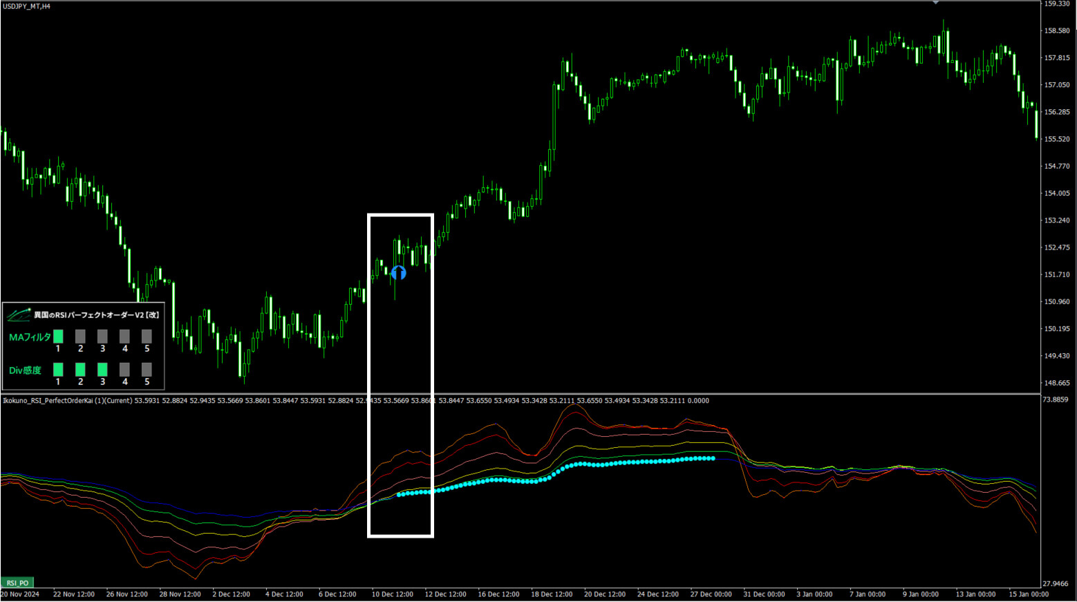 メインのRSIパーフェクトオーダーを表示するインジケーターに加えて、