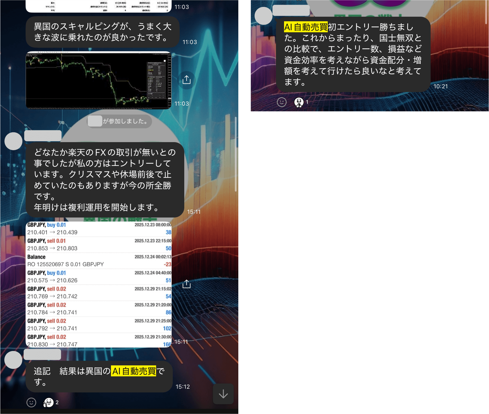 | 2025/12/22 15:50 | GBPJPY | Buy | 211.067000 | 211.185000 | +11.8 |