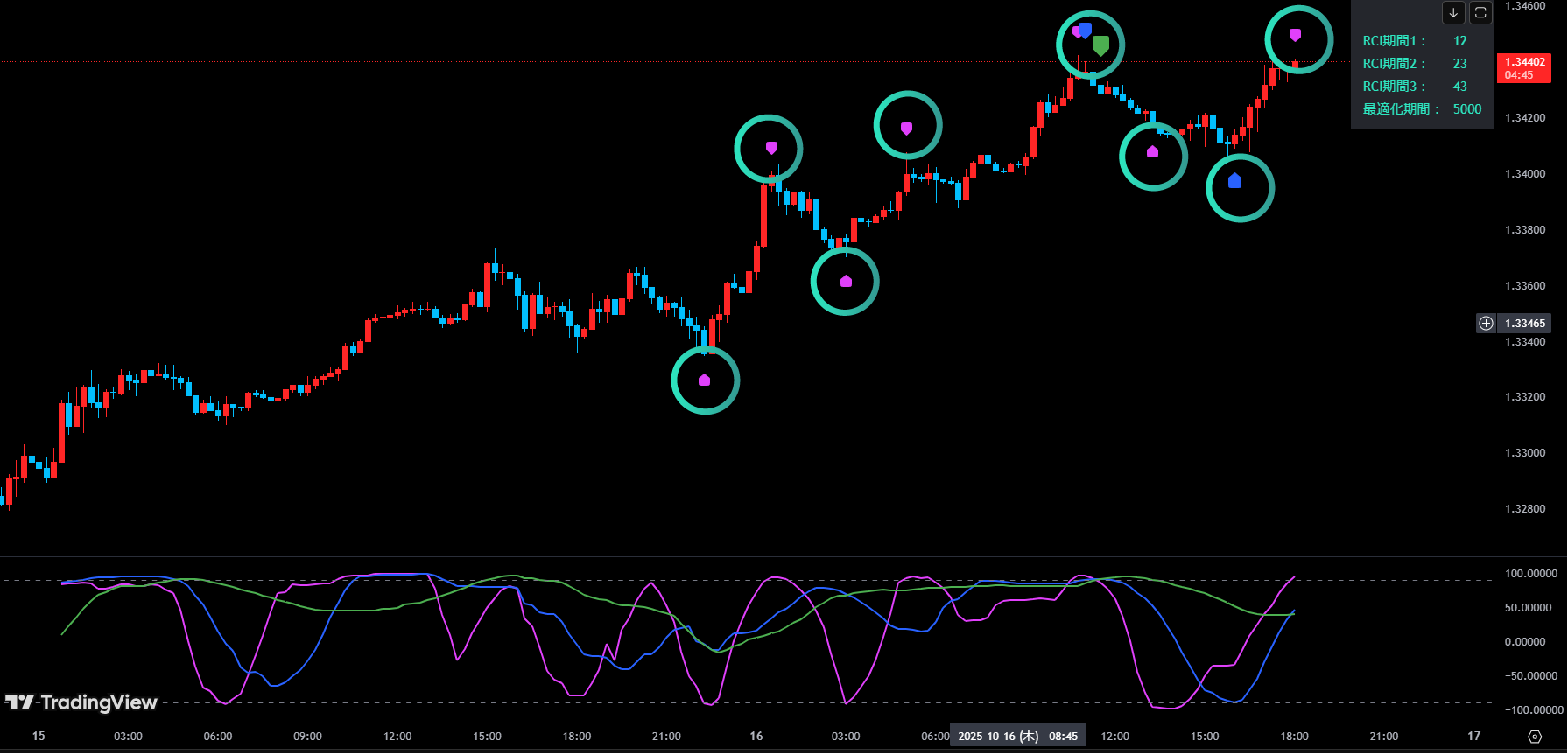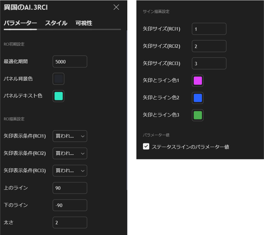 ③それぞれのRCIにサイン表示